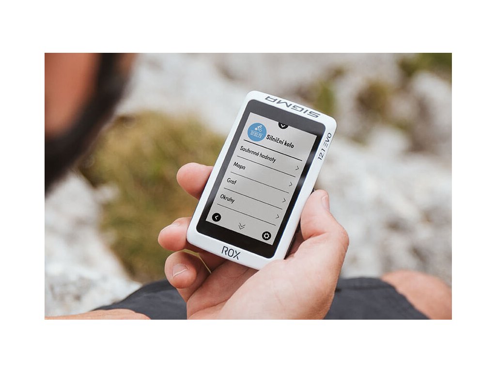Trojpalcový dotykový displej dokonale zapadá do moderného dizajnu cyklopočítača ROX 12.1 EVO. Vďaka svojej veľkosti je displej veľmi dobre čitateľný aj počas jazdy. Kompaktný GPS cyklopočítač váži iba 110 gramov.