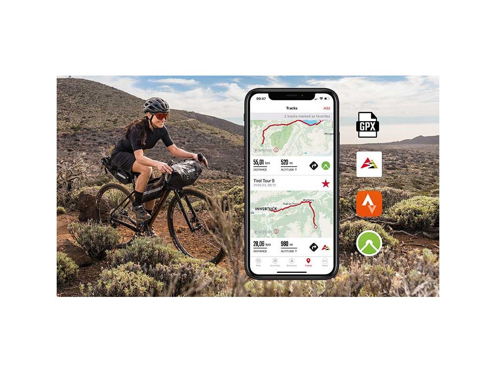 Pomocou navigačnej funkcie „Search & Go“ môžeš rýchlo vyhľadať ľubovoľné miesto a nechať sa k nemu doviesť. Stačí zadať adresu do aplikácie SIGMA RIDE na smartfóne alebo kliknúť na ľubovoľný bod na mape. Môžeš nastaviť individuálne preferencie pre druh cesty (cyklotrasy, nespevnené cesty, cesty a bežecké/turistické trasy). Vytvorenú trasu je možné spustiť priamo na zariadení ROX 2.0 ENDURANCE alebo ju uložiť pre neskoršie použitie v aplikácii RIDE.