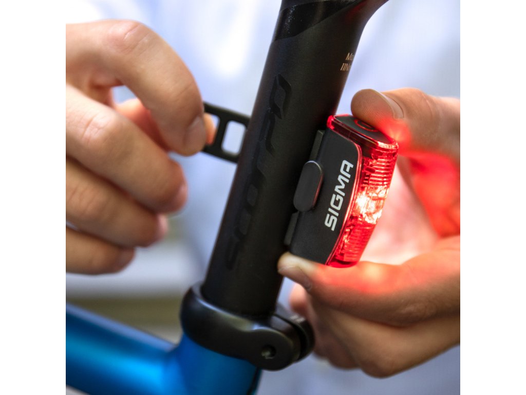 Pomocou silikónového pásiku zahrnutého v balení možno cyklosvietidlo ľahko a bez náradia namontovať na všetky bežné sedlové trubky, a teda je použiteľné na akomkoľvek bicykli.