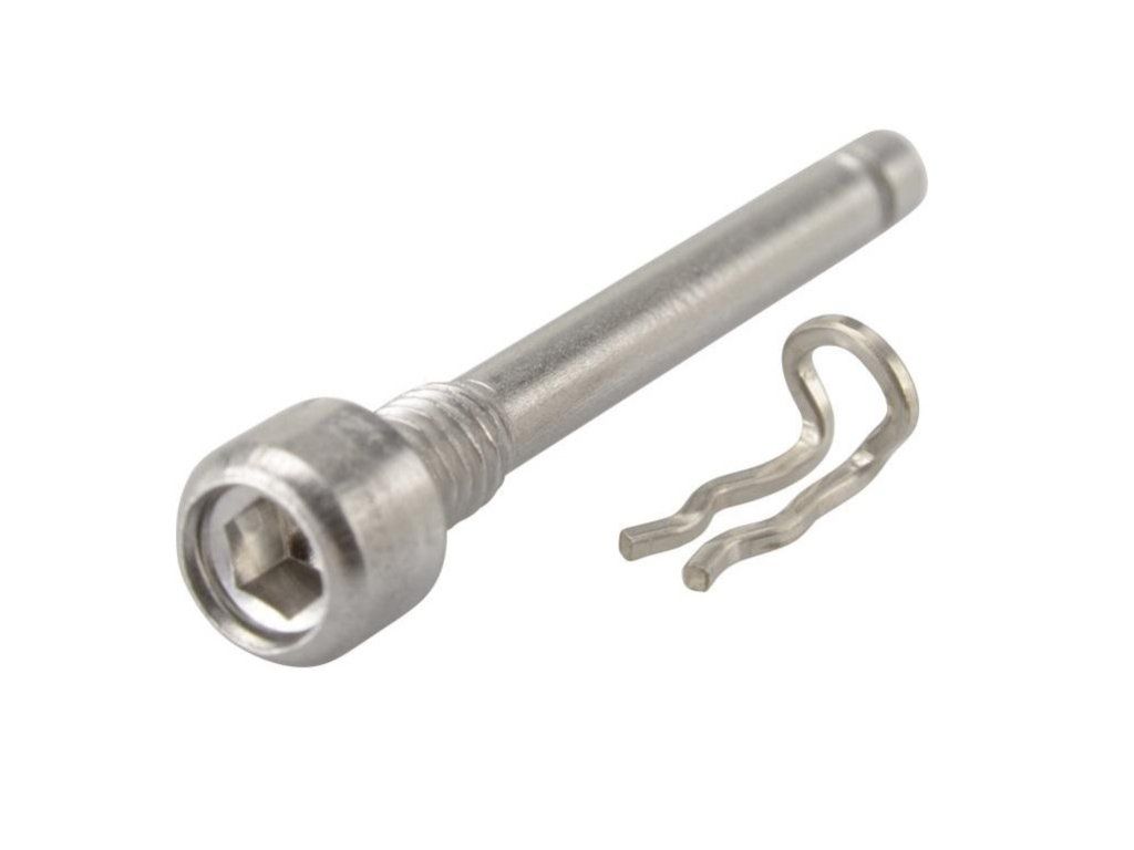 Poistná skrutka so závlačkou je určená na zaistenie platničiek v brzdovom strmeni. Kompatibilná s BR-M8210/M8100/M8020/M8000/M820/M640/M9020/M7100/M785.
