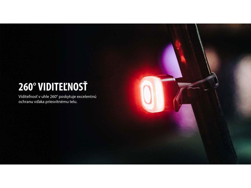 Max výkon: 150 lm; Max prevádzkový čas: 44 hod; Viditeľnosť: 260°; Doba nabíjania: 1 hod; Nabíjačka: micro USB; Vodeodolnosť: IPX6; Systém upevnenia: na predné riadidlá; Rozmery: 30x34x32 mm; Váha: 26 g;