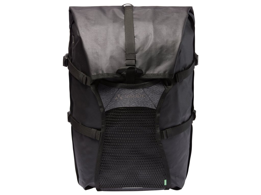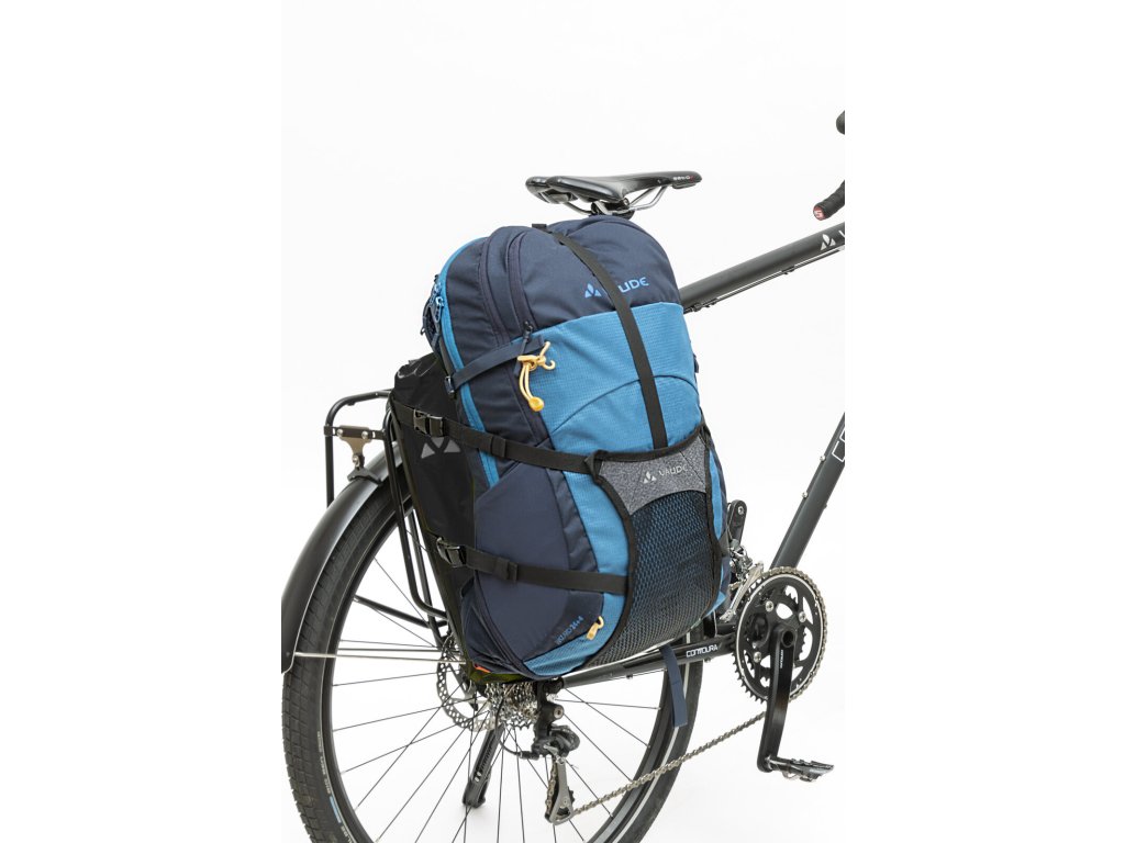 - veci ktoré sa nezmestia do tašky, ako napríklad stan, mokré oblečenie alebo objemné veci, môžete pripevniť vpredu za flexibilnú chlopňu pomocou dvoch kompresných popruhov