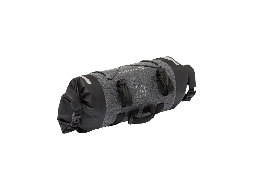 - Primárny materiál tašky na riadidlá je vyrobený z recyklovaného polyamidu, ktorý sa získava recykláciou z textilných materiálov, ako sú použité rybárske siete