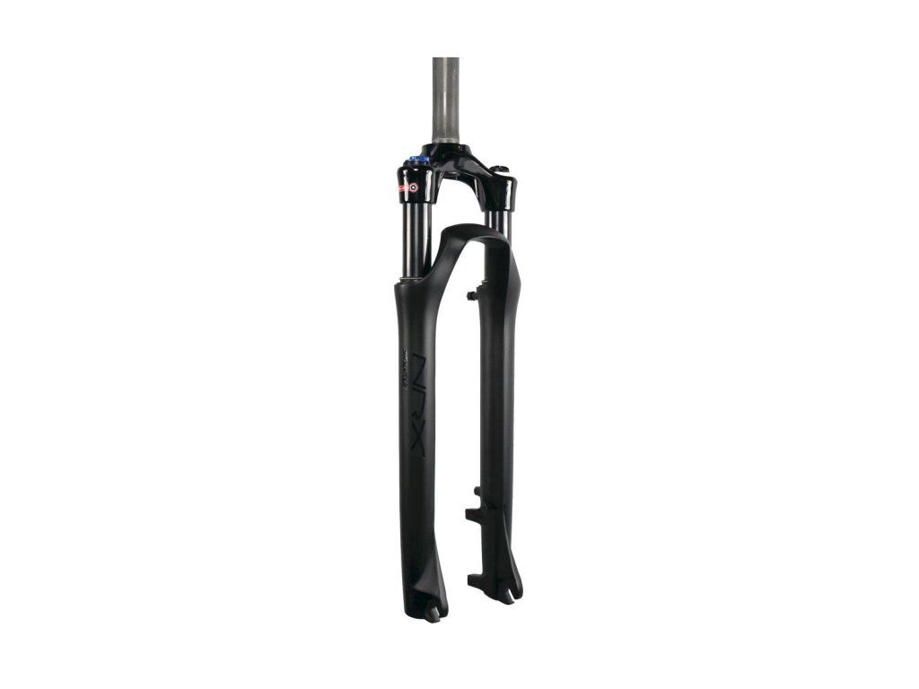 Vidlica NRX-D, vzduchová, lockout LO - možnosť uzamknutia vidlice na horných nohách, veľkosť kolies 700C - 28", zdvih 63mm, krk rovný - TS 1-1/8", farba čierna matná.