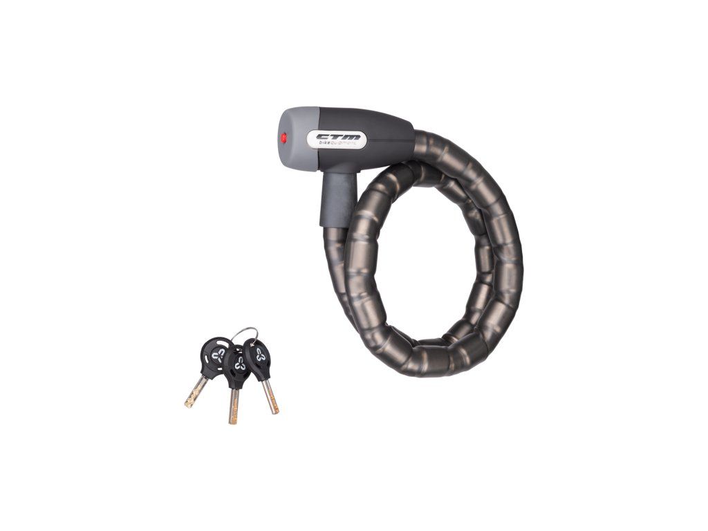 Článkový kvalitný zámok na kľúče; Pogumovaná povrchová úprava hlavy a návleku; Balenie obsahuje 3 kľúče; Extra odolné prevedenie; Rozmer: 25x1000 mm; Farba: matná čierna/šedá"