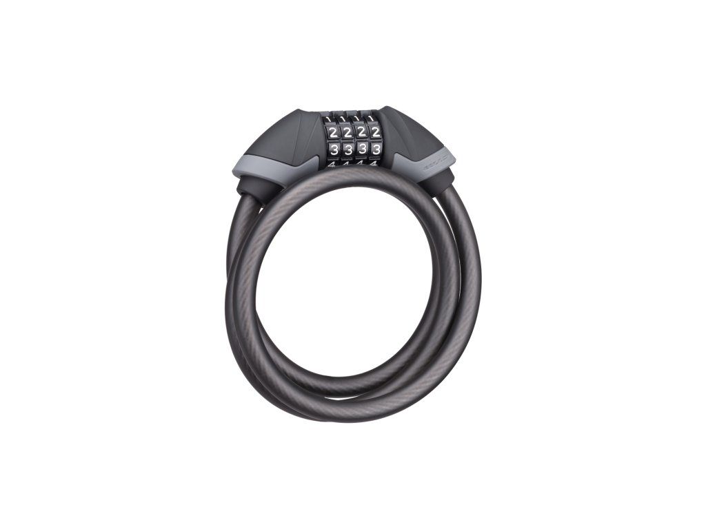 Špirálový kvalitný zámok na kód; Pogumovaná povrchová úprava hlavy a návleku; Extra odolné prevedenie; Rozmer: 12x1200 mm; Farba: matná čierna/šedá"