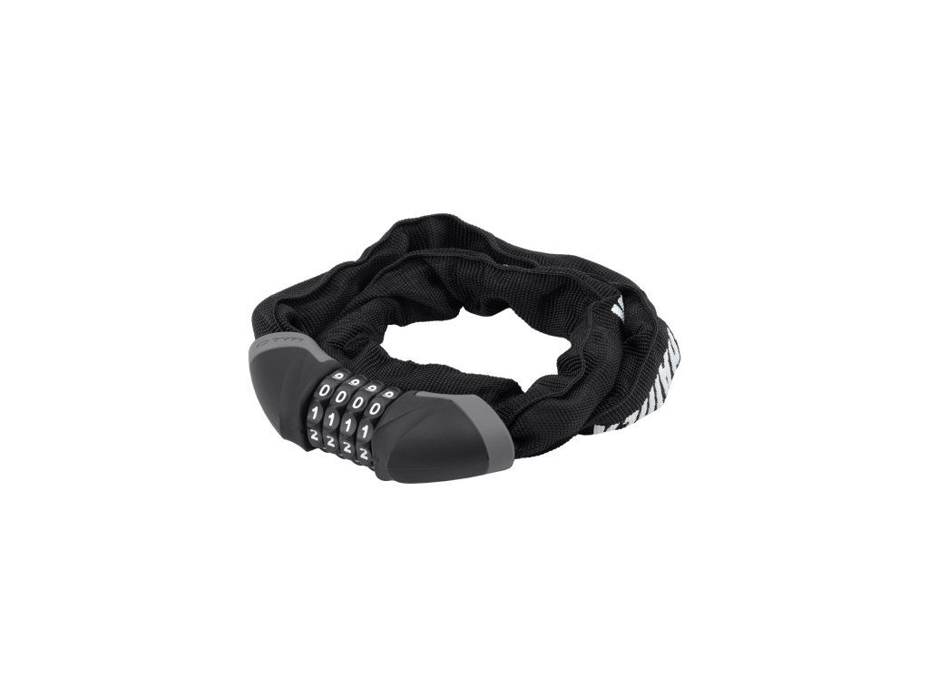 Reťazový kvalitný zámok na kód; Pogumovaná povrchová úprava hlavy a utesnený návlek na reťaz; Extra odolné prevedenie; Rozmer: 6x850 mm; Farba: matná čierna/šedá"