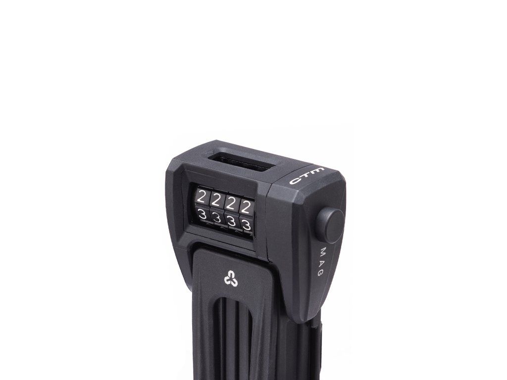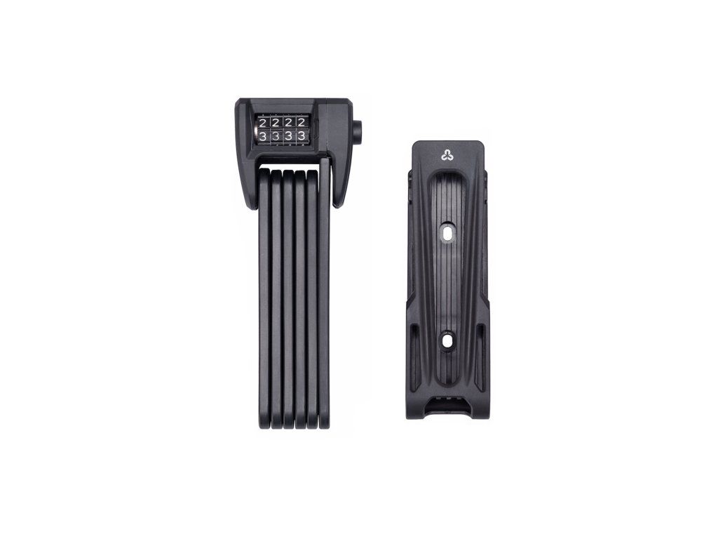 Skladací ultraľahký zámok na kód; Tvrdené oceľové články s hrúbkou 3,5mm s vylepšenou úpravou proti prerezaniu a preťažení; Odolné voči nízkym teplotám a korózií ; Plastová matná povrchová úprava hlavy a článkov; Držiak zámku možné namontovať priamo na rám pomocou skrutiek alebo pomocou sťahovacích remienkov; Jednoduché vyberanie zámku z držiaku vďaka bez-popruhovému dizajnu – zámok stačí vytiahnuť/vložiť a pevne drží na mieste (možné vyberať aj do strán); Na zadnej strane držiaku sa nachádza skryté miesto pre vloženie GPS lokátora (nie je súčasťou); Úroveň ochrany: 4; Rozmer: 900mm; Fabra: čierna