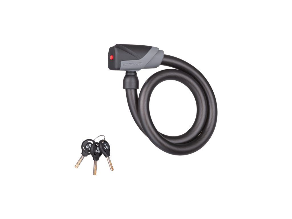 Slučkový kvalitný zámok na kľúče; Pogumovaná povrchová úprava hlavy a návleku; Balenie obsahuje 3 kľúče; Extra odolné prevedenie; Rozmer: 18x800 mm; Farba: matná čierna/šedá"