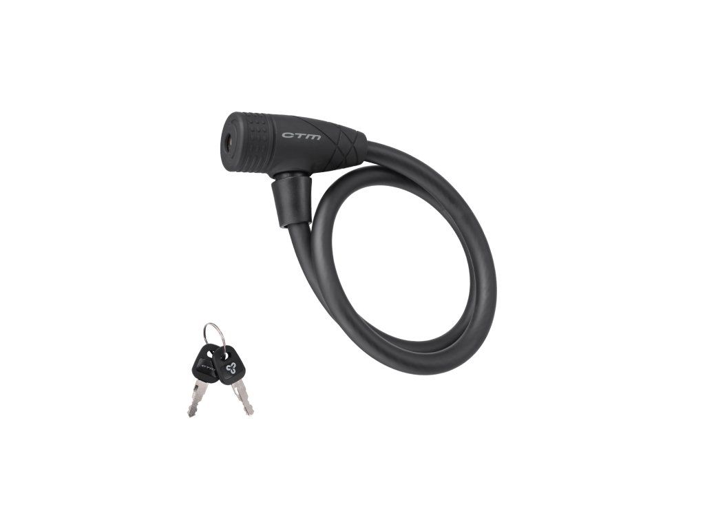 Slučkový kvalitný zámok na kľúč; Pogumovaná povrchová úprava hlavy a návleku; Balenie obsahuje 2 kľúče; Extra odolné prevedenie; Rozmer: 10x650 mm; Farba: matná čierna