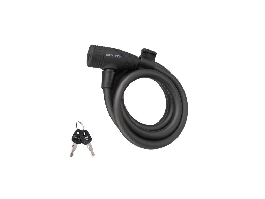 Slučkový kvalitný zámok na kľúč; Pogumovaná povrchová úprava hlavy a návleku; Balenie obsahuje 2 kľúče a držiak na bicykel; Extra odolné prevedenie; Rozmer: 12x1500 mm; Farba: matná čierna