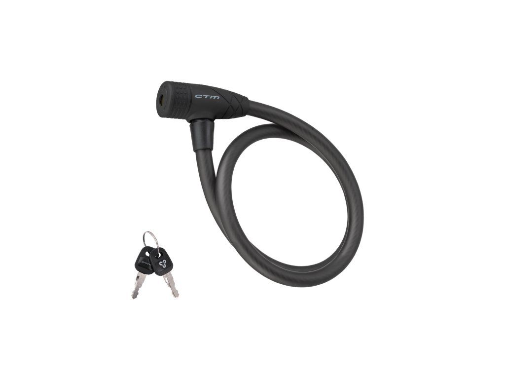 Slučkový kvalitný zámok na kľúč; Pogumovaná povrchová úprava hlavy a návleku; Balenie obsahuje 2 kľúče; Extra odolné prevedenie; Rozmer: 12x850 mm; Farba: matná čierna