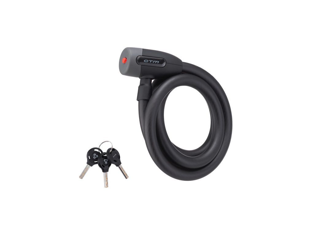 Slučkový kvalitný zámok na kľúče; Pogumovaná povrchová úprava hlavy a návleku; Balenie obsahuje 3 kľúče; Extra odolné prevedenie; Rozmer: 15x1500 mm; Farba: matná čierna/šedá"
