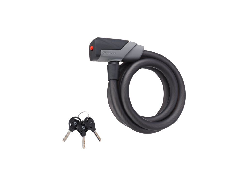 Špirálový kvalitný zámok na kľúč; Pogumovaná povrchová úprava hlavy a návleku; Balenie obsahuje 3 kľúče; Extra odolné prevedenie; Rozmer: 12x1200 mm; Farba: matná čierna/šedá"